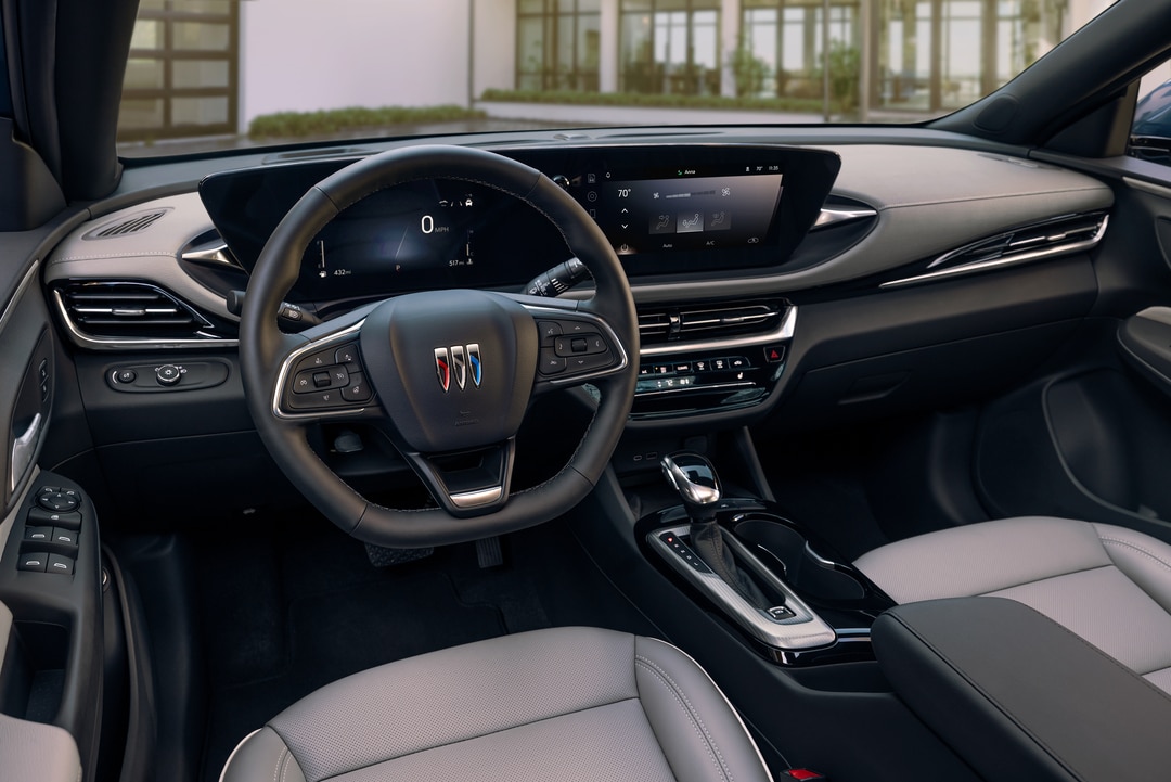 The premium Avenir trim represents the pinnacle of Envista luxury, with standard features including 19-inch Avenir Premium Pearl Nickel aluminum wheels, perforated leather-appointed seats, a power liftgate, an auto-dimming rearview mirror, and three years of OnStar One service. The Avenir also includes heated front seats, a heated steering wheel, and an eight-way power driver's seat as standard.