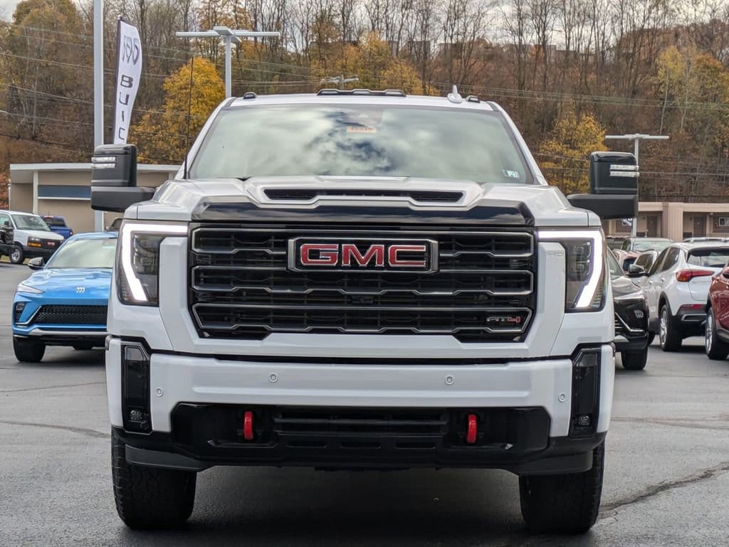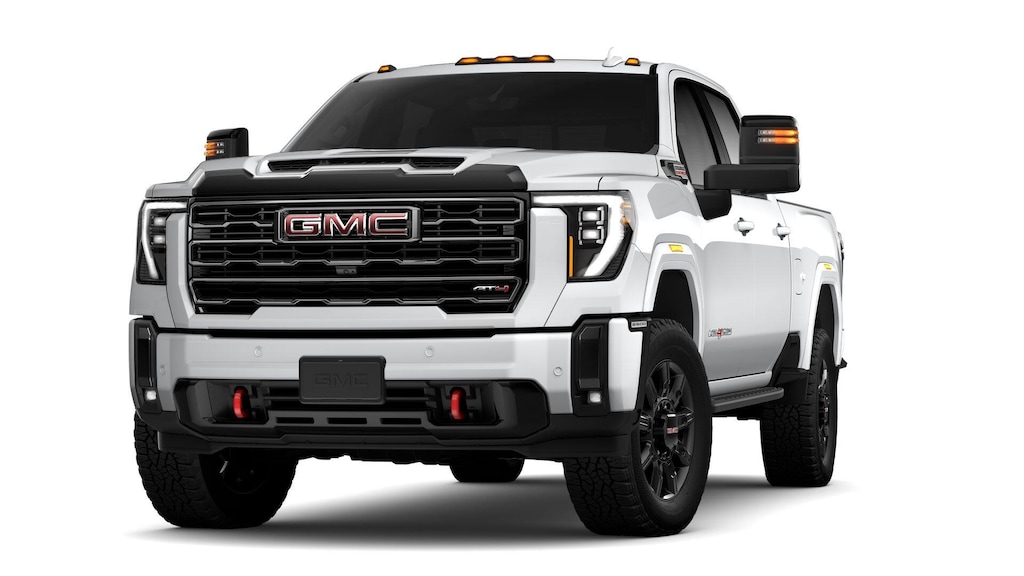 Summit White 2026 GMC Sierra 2500HD AT4 4WD 10-Speed Automatic Duramax 6.6L V8 Turbodiesel 10-Speed Automatic, 4WD, Jet Black With Kalahari Accents Leather.
